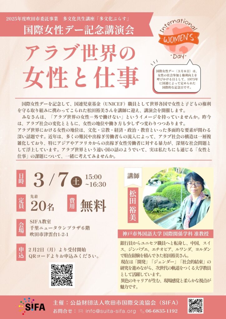 国際女性デーを記念して、国連児童基金(UNICEF)職員として世界各国で女性と子どもの権利を守る取り組みに携わってこられた松田裕美さんを講師に迎え、講演会を開催します。